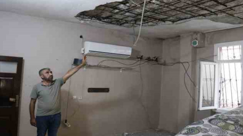 Adana’da yaşanan depremler sonrasında hasarsız raporu verilen müstakil evin tavanı yıkıldı.