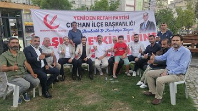 Yeniden Refah Partisi Ceyhan İlçe Başkanı Sedat Edik ve İl Başkan Yardımcıları Oktay Göksu, Ömer yıldız ve Rasim Çetintaş ın düzenlemiş olduğu aşure etkinliğine Ceyhan Belediye Başkan vekili Sevil Aydar Yıldız da katıldı. Çok sayıda vatandaş katıldı çarçi merkezinde yapılan aşure etkinliği Ceyhanlılar tarafından olağanüstü ilgi gördü.Bölge başkanı Harun Pala Ceyhan teşkilatımız Adana'nın gözbebeği ,her mecrada Adana teşkilatlarına öncülük yapar ve güzel çalışmalar sergileyerek bizleri gururlandırıyor dedi.Siyasi olarak her türlü fikirden insanı böylesine anlamlı bir etkinlikte birleştiren, İlçe Başkanımız ve teşkilatına teşekkür ediyor, başarıların devamını bekliyoruz diyerek katılım sağlayan vatandaşlara da teşekkür etti.