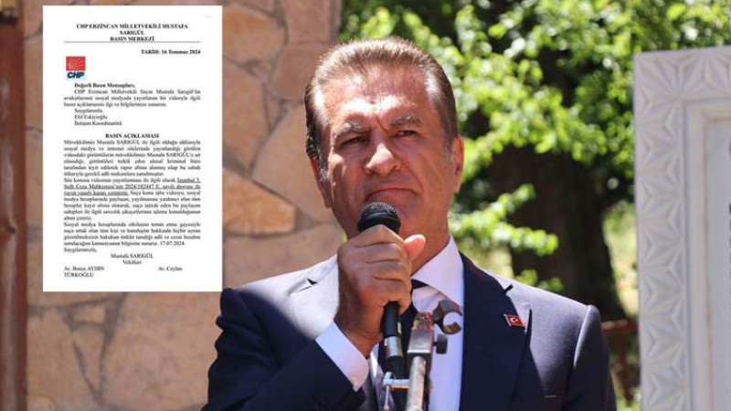 CHP Erzincan Milletvekili Mustafa Sarıgül'ün avukatları tarafından yapılan açıklamada, şunlar kaydedildi: